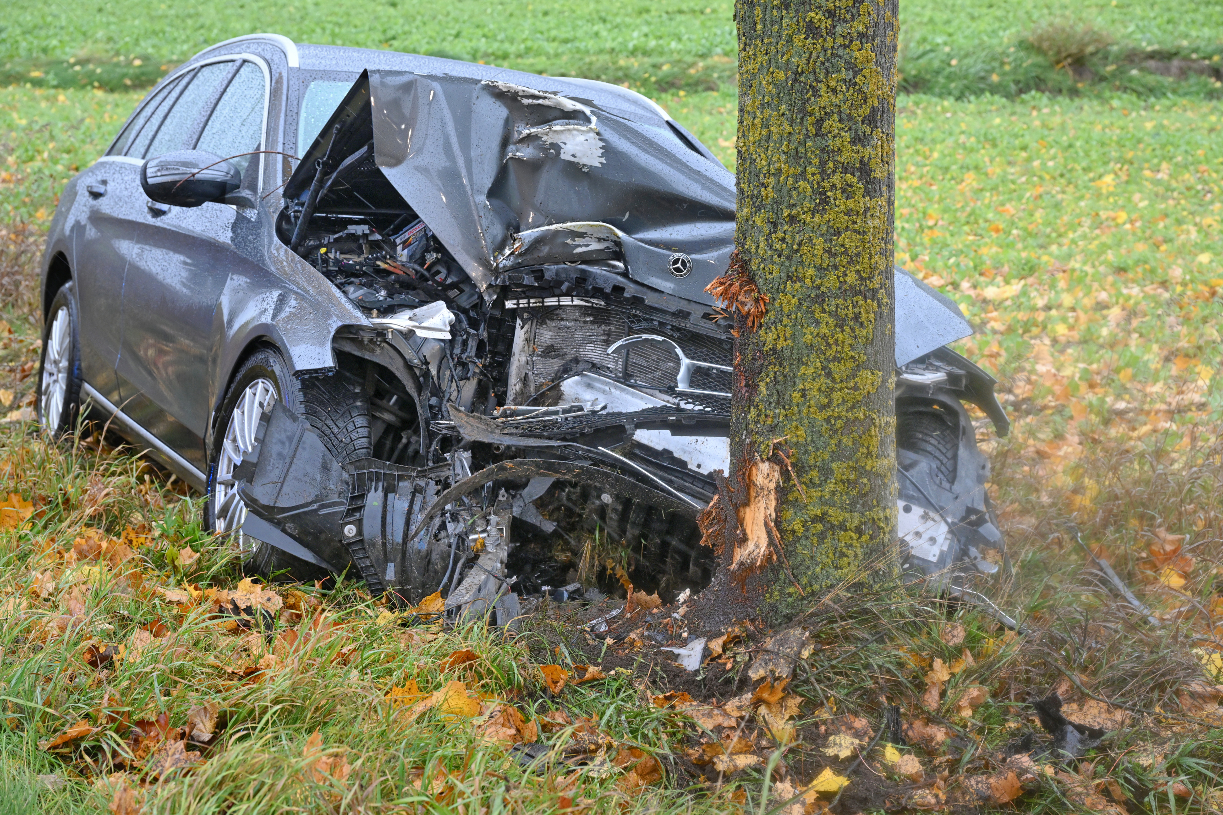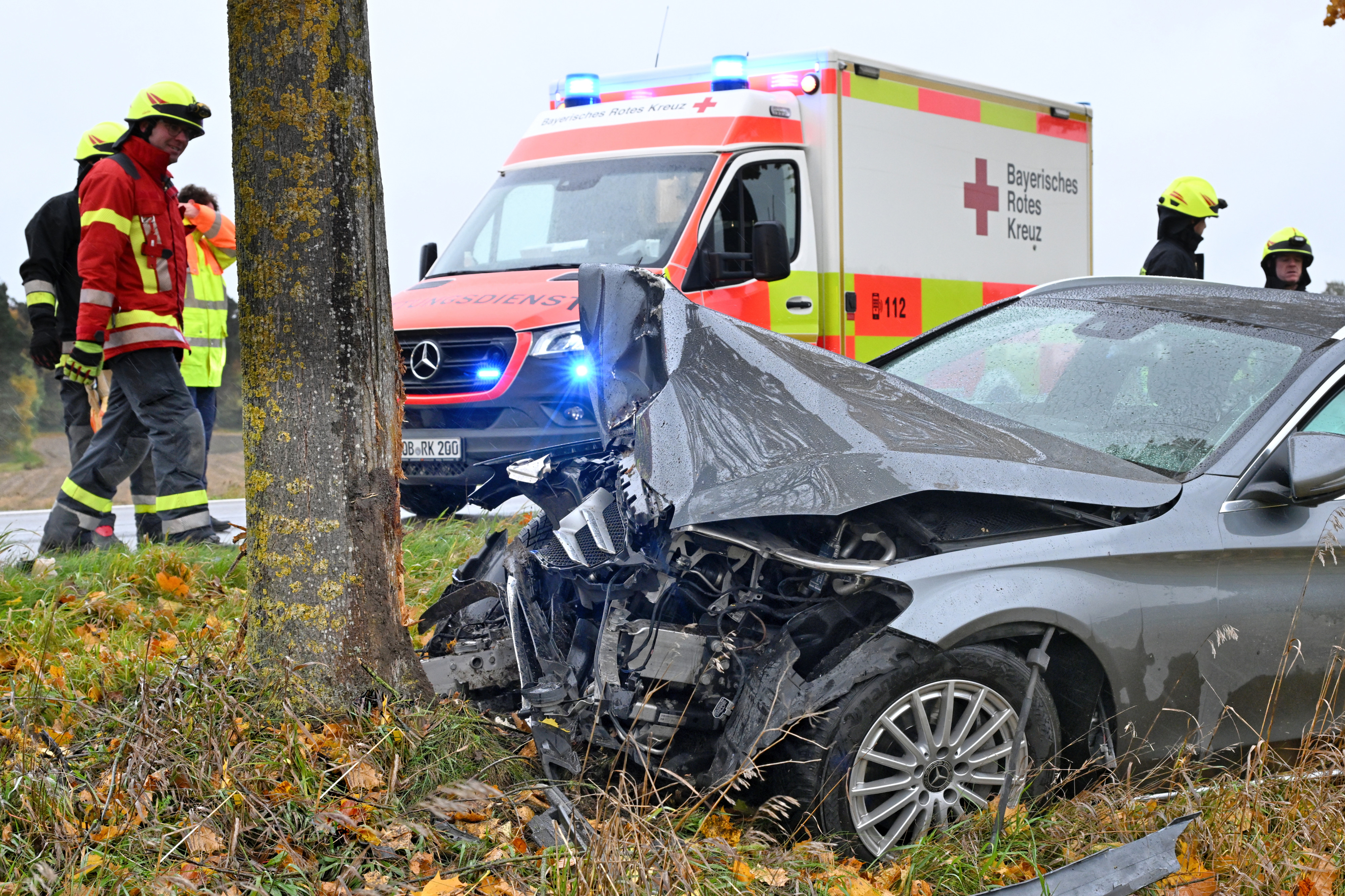 gegen einen Baum gefahren. Die Feuerwehr Aresing sicherte die